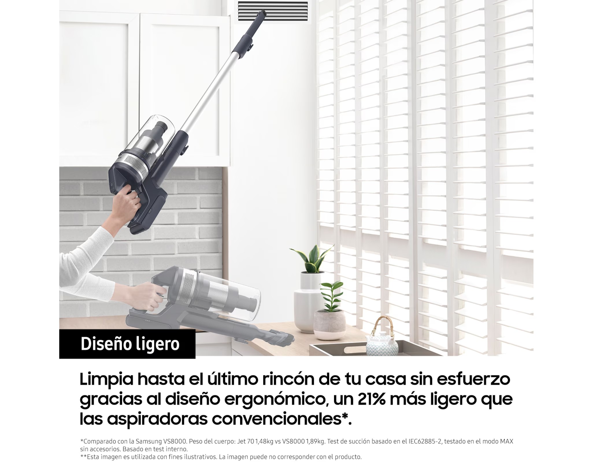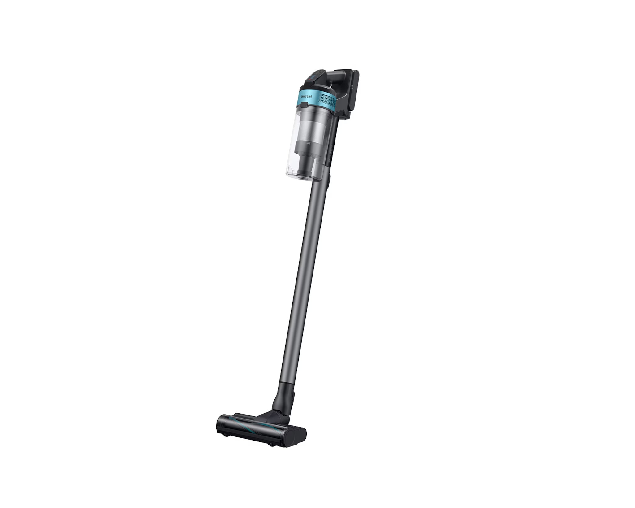 Samsung VS20B75AGR1. Tipo de limpiador: Secar, Método de separación de la suciedad: Multiciclónico, Superficies de limpieza: Alfombra, Suelo duro. Tipo de depósito: Sin bolsa, Color del producto: Negro, Color menta, Capacidad del depósito del polvo en seco: 0,8 L. Fuente de energía: Batería, Potencia máx. de entrada: 550 W, Tiempo de funcionamiento: 60 min. Peso: 2,6 kg, Ancho: 250 mm, Profundidad: 215 mm. Ancho del paquete: 214 mm, Profundidad del paquete: 265 mm, Altura del paquete: 757 mm