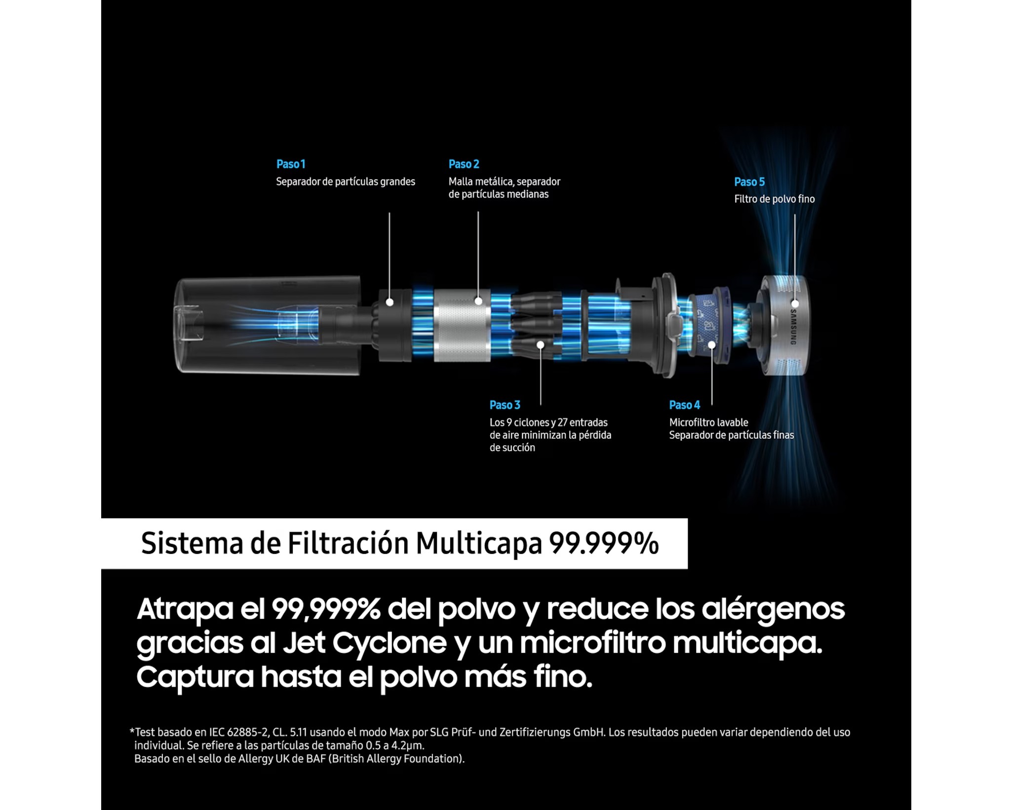 Samsung VS20B75AGR1, Secar, Multiciclónico, Alfombra, Suelo duro, 86 dB, 200 W, Sin bolsa