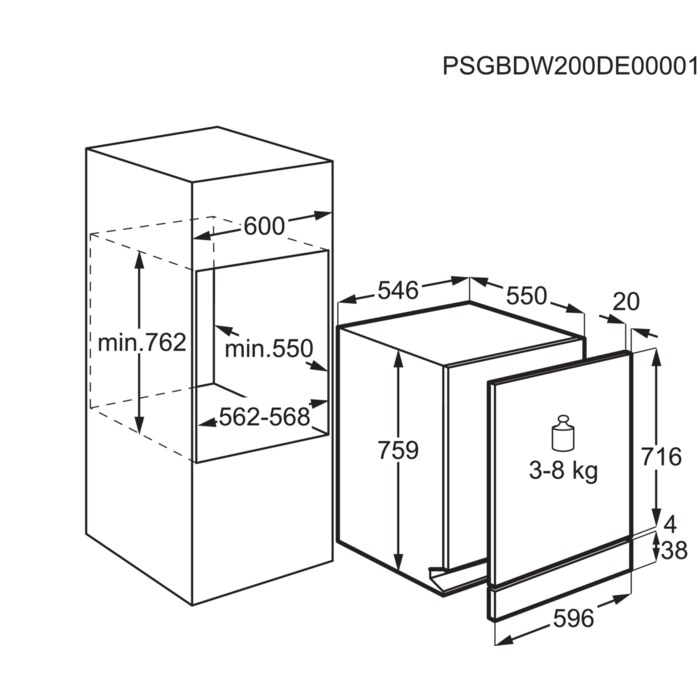 - Fondo (mm): 550